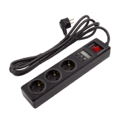 Le Bloc Multiprise 3 Prises Type F Schuko EU + 2xUSB 3M a un câble de 3 mètres et un interrupteur lumineux.