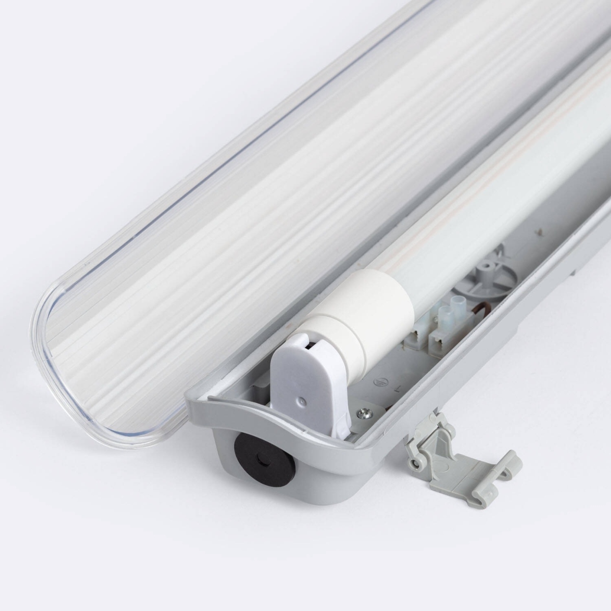 Le boîtier de la réglette, avec son indice de protection IP65, assure une étanchéité totale contre la poussière et les projections d'eau (même les jets), la rendant parfaite pour les milieux humides ou difficiles.